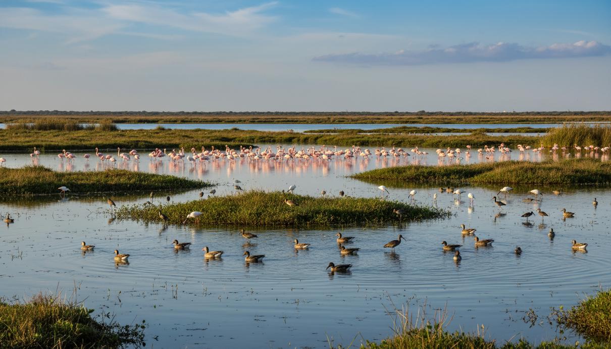 Позитивную реакцию на хорошее состояние водоемов показали и другие виды. Например, черный аист (Ciconia nigra), крайне редкий в Европе зимой, достиг 113 особей, что подчеркивает значимость Доньяны как одного из немногих важных мест зимовки для этого вида. Каравайка (Plegadis falcinellus) собралась в крупные стаи, насчитывающие 14 900 особей – это более 12 000 дополнительных птиц. Колпица обыкновенная (Platalea leucorodia) также продемонстрировала благоприятный отклик, достигнув 2 200 особей. Даже желтая цапля (Ardeola ralloides), которая обычно зимует в Африке, воспользовалась исключительными условиями этого года, достигнув 32 особей. Специалисты связывают этот рост с улучшением гидрологических условий после благоприятных дождей и мерами по поддержанию затопленных зон в зимний период, что является ключевым фактором для питания и отдыха перелетных птиц.