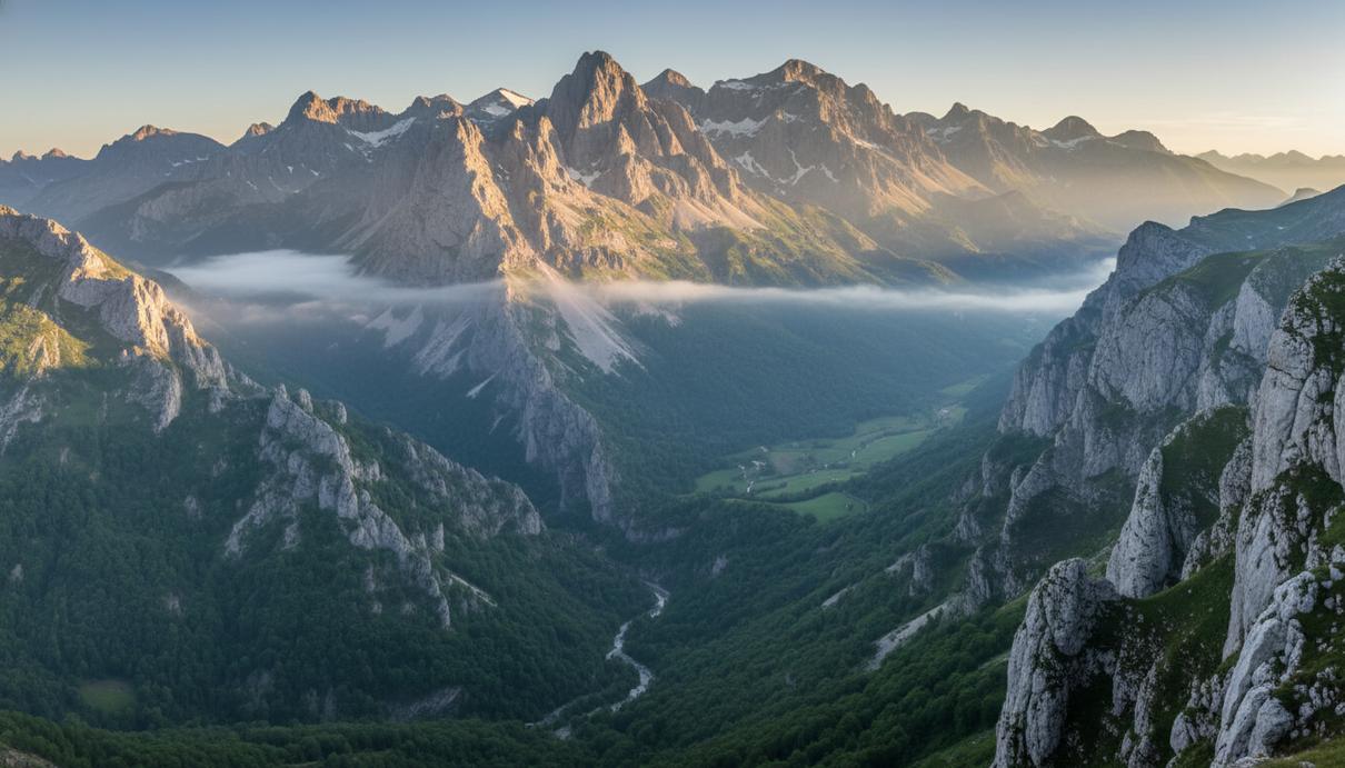 Расположенный на территории провинций Астурия, Кантабрия и Кастилия-и-Леон, парк отличается исключительными географическими характеристиками. Его известняковые вершины, достигающие высоты 2650 метров, находятся всего в нескольких километрах от побережья Бискайского залива. Такое соседство создает резкий контраст между высокогорным рельефом и морским горизонтом, формируя экосистему с глубокими ущельями и зелеными долинами. Особенности рельефа позволяют на относительно небольшой площади наблюдать разнообразие флоры и фауны, характерное для разных климатических зон.